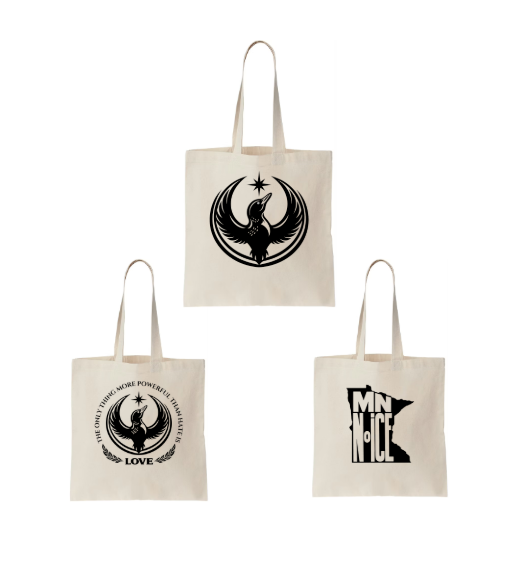 Instead of scheduled Print Nights, you can now bring in your own shirt during our open hours and have it screenprinted with one of our protest designs — like Battle Loon or MN No ICE — through further notice.